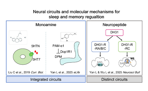 Sleep and memory are time-dependent, complex, and important physiological functions. Memory and sleep are inextricably linked: cognitive deficits are often associated with sleep disorders (such as Alzheimer's disease), and sleep abnormalities can cause functional deficits at the molecular, cellular, physiological, and cognitive levels. Although memory formation has been shown impaired after sleep deprivation, more evidence support memory consolidation is attributed to sleep. However, the spatiotemporal co-regulation of memory coding and sleep is still difficult, and the biological basis of sleep and memory, especially the integrated circuit mechanism is still unclear. To study the molecular and cellular basis of the interaction between sleep and memory, and to explore new targets and strategies for diagnostic and therapeutic interventions for sleep disorders and cognitive decline, we use Drosophila melanogaster as the primary animal model and apply multidisciplinary approaches, including behavioral, genetic, anatomical, and imaging techniques, and utilize cross-cutting and advanced scientific research platforms to investigate the same questions through cross-species validation.